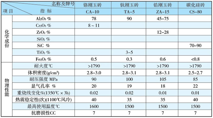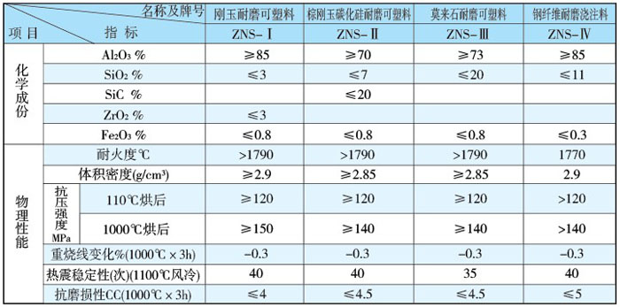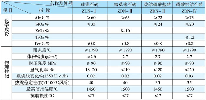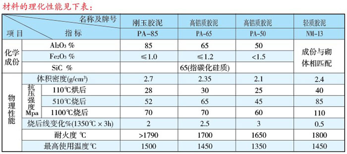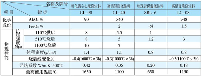 本系列耐火材料與普通鍋爐用同類材料相比,具有耐壓強度高,施工性能好等優(yōu)點。適應(yīng)鍋爐氣密性要求高,施工結(jié)構(gòu)復(fù)雜等特定條件,其理化指標(biāo)見下表: