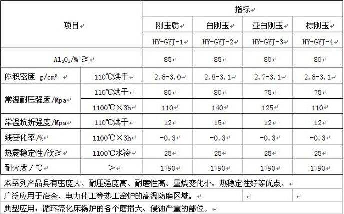 剛玉澆注料的理化指標(biāo):
