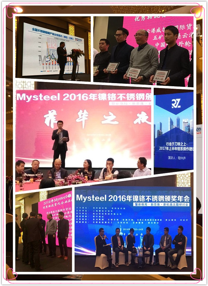 2016年11月23日,由上海鋼聯主辦的“2016年鎳鉻不銹鋼頒獎年會”在上海召開。本次大會邀請了行業杰出領袖、知名企業代表等參加,試圖從不同的角度去分析、探討行業動態,江蘇江能新材料科技有限公司常務副總、營銷副總應邀出席本次大會。