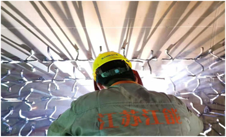 錨固鉤是附著在殼體上的關鍵材料,澆注料依靠錨固鉤牢牢固定殼體上,它的設計及施工質量直接影響耐火澆注料的使用壽命。錨固鉤材質的選擇也至關重要,材質不當或者材料直徑太細,會使錨固鉤在設備生產使用溫度下不能承受耐火澆注料的作用力而軟化變形,造成整塊倒塌。同樣,如果錨固鉤焊接太密,也會出現耐火澆注料與錨固鉤在加熱時由于熱膨脹而產生內應力,嚴重時導致耐火澆注料疏松剝落。另外錨固鉤焊接時,應選擇合適的焊條焊接,焊縫要飽滿焊接,不能出現虛焊、假焊。