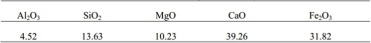 表1抗渣實驗所用的轉爐渣成分,wt%
