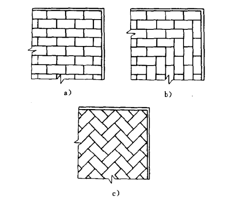 2 爐底砌筑形式a)錯縫形b)席紋形c)人字形