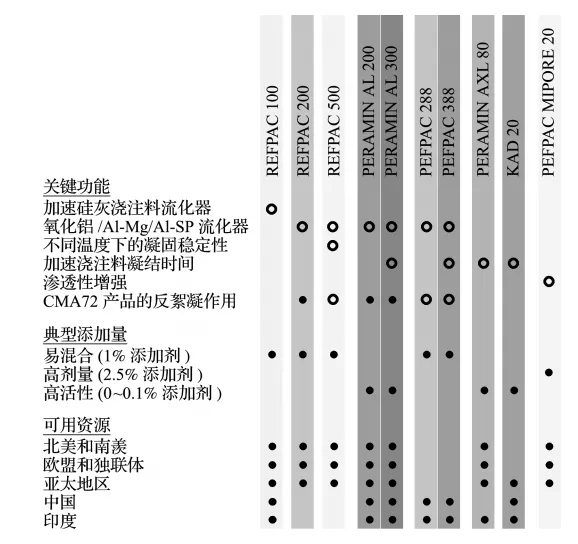 在不同的地方獲取活性化合物,并在加入低水泥澆注料后具有主要的功能性能,見圖。